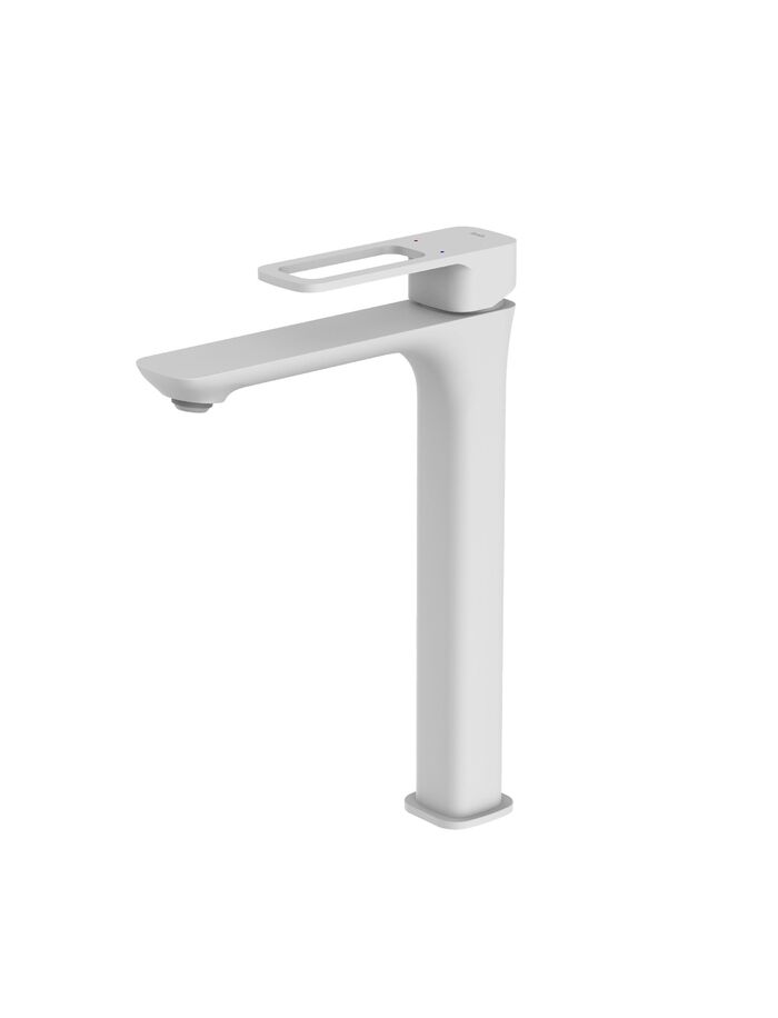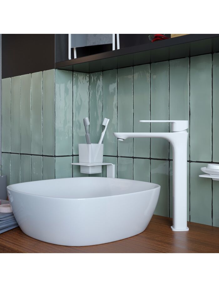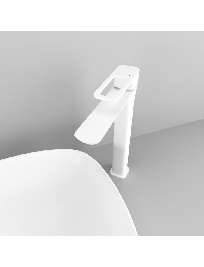 Высокий смеситель для настольного умывальника Slide в популярном белом цвете отлично дополнит настольный умывальник-чашу. Отверстие-петля на ручке выполняет декоративную и при этом практичную роль — ее легко захватить даже намыленной рукой и отрегулировать напор или температуру. Силиконовый аэратор эстетично скрыт в корпусе излива. В комплекте гибкая подводка и комплект крепежа.• Смеситель IDDIS® прослужит долго благодаря надежному корпусу из прочной латуни, стойкому к коррозии, резким изменениям давления и перепадам температуры воды.