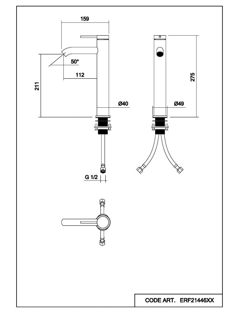 Смеситель для раковины Abelsberg Fluida ERF22003CH высокий, вулканический черный