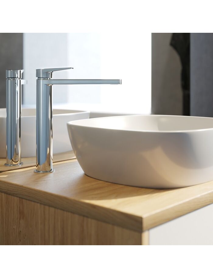 Смеситель для настольного умывальника Bridge — это чистые геометрические формы, которые подойдут к ванной комнате в любом стиле. Высокий корпус смесителя — 237 мм — позволит создать актуальный интерьер: смеситель может монтироваться как на умывальник, так и на мебельную тумбу или столешницу, на которой установлен настольный умывальник-чаша.• Надежный корпус из прочной первичной латуни марки ЛЦ40С ГОСТ 17711-93 с пониженным содержанием свинца — стойкий к коррозии, резким изменениям давления и перепадам температуры воды.