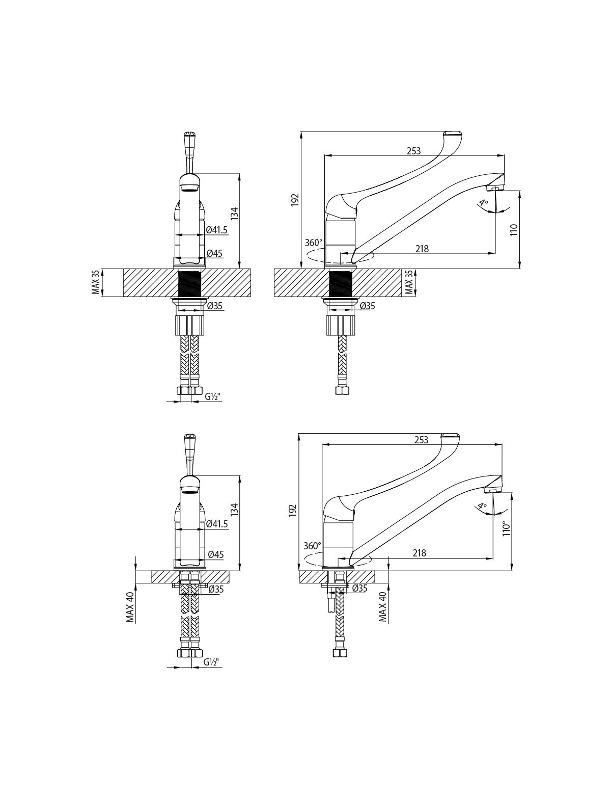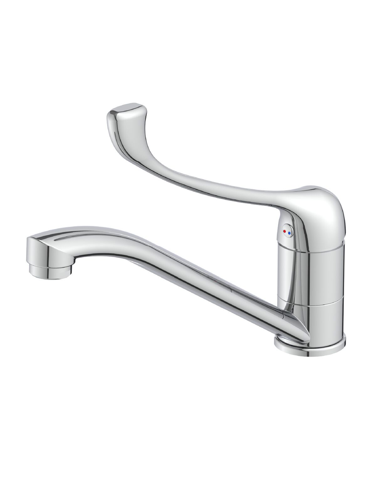 Смеситель для раковины/кухни с локтевой рукояткой, с поворотным изливом, высота излива 12 см, длина 21 см, латунь/хром