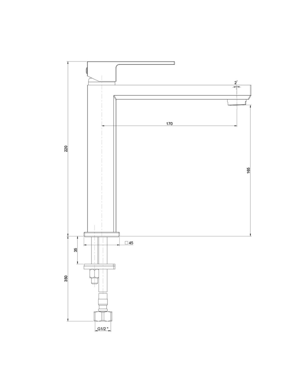 Длина излива мм:
