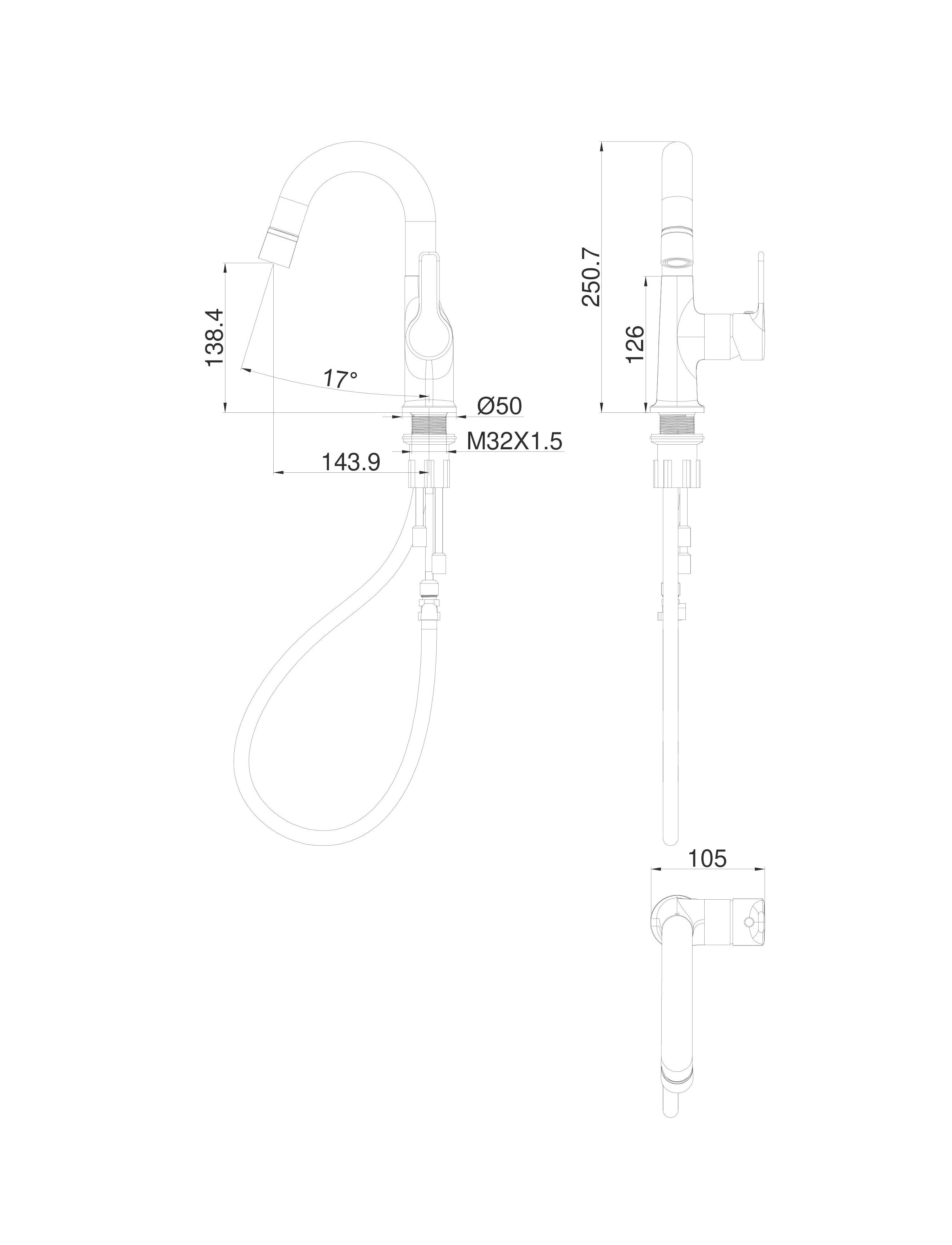 Смеситель для раковины с выдвижным изливом WONZON & WOGHAND, Черный матовый (WW-FE01L212-MB)