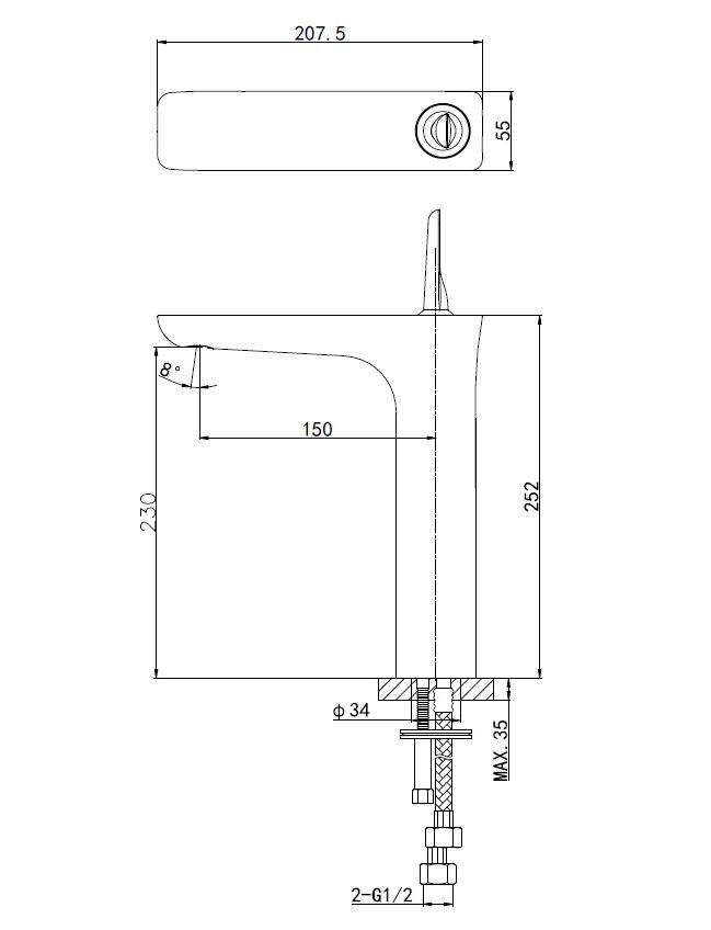 Смеситель для раковины высокий WONZON & WOGHAND SHARK, Хром (WW-48B1102-CR)