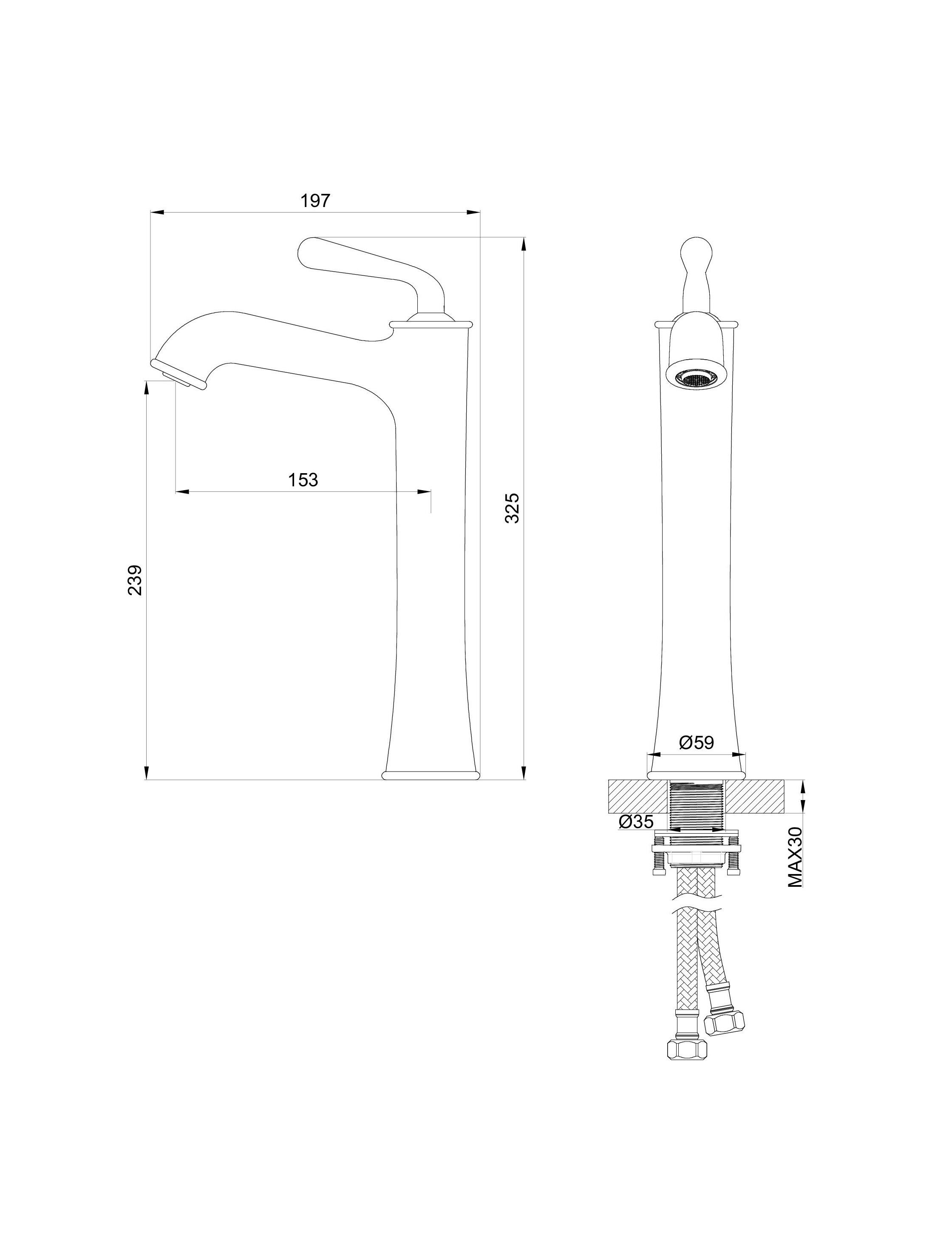 Смеситель для раковины высокий WONZON & WOGHAND STEAM, Черный матовый (WW-88239008-MB)