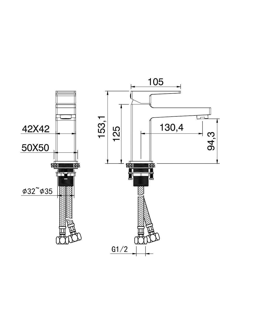 Смеситель для раковины WONZON & WOGHAND CUBE 2.0, Черный матовый (WW-88018068-MB)