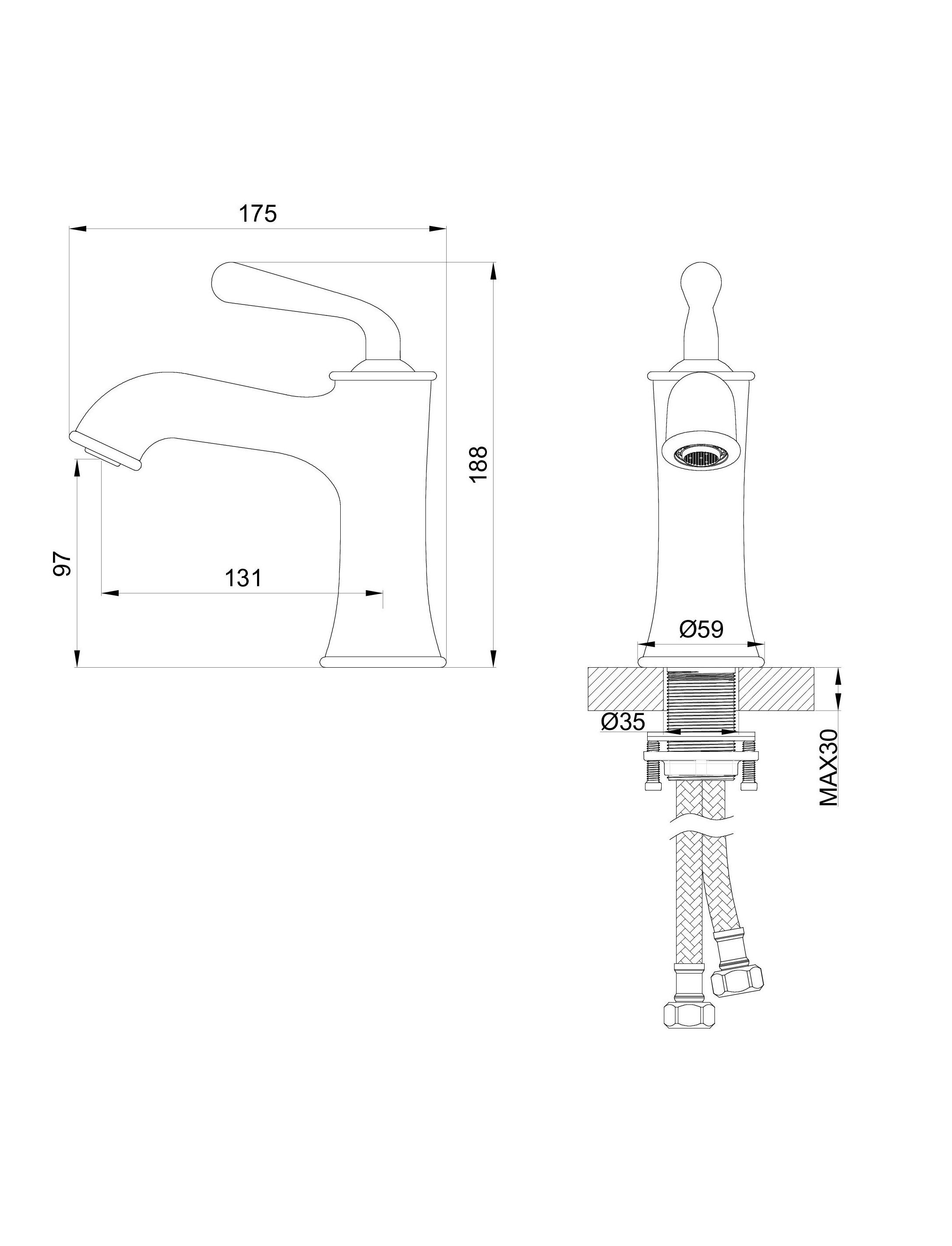 Смеситель для раковины WONZON & WOGHAND STEAM, Черный матовый (WW-88139008-MB)