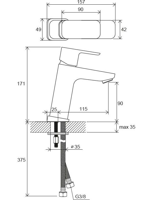 Смеситель для умывальника без донного клапана 170 мм TD F 014.00