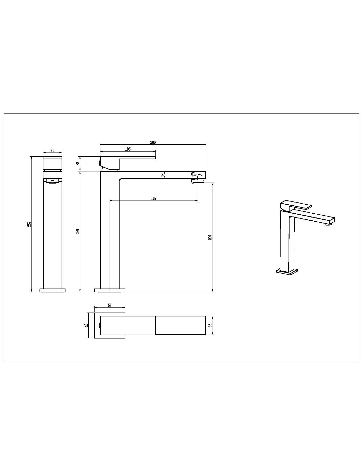 Смеситель для умывальника высокий Qubic Matt Gold