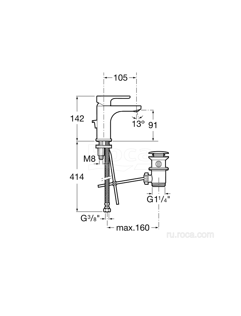 Смеситель Roca L20 для раковины с донным клапаном, 5A3A09C0M