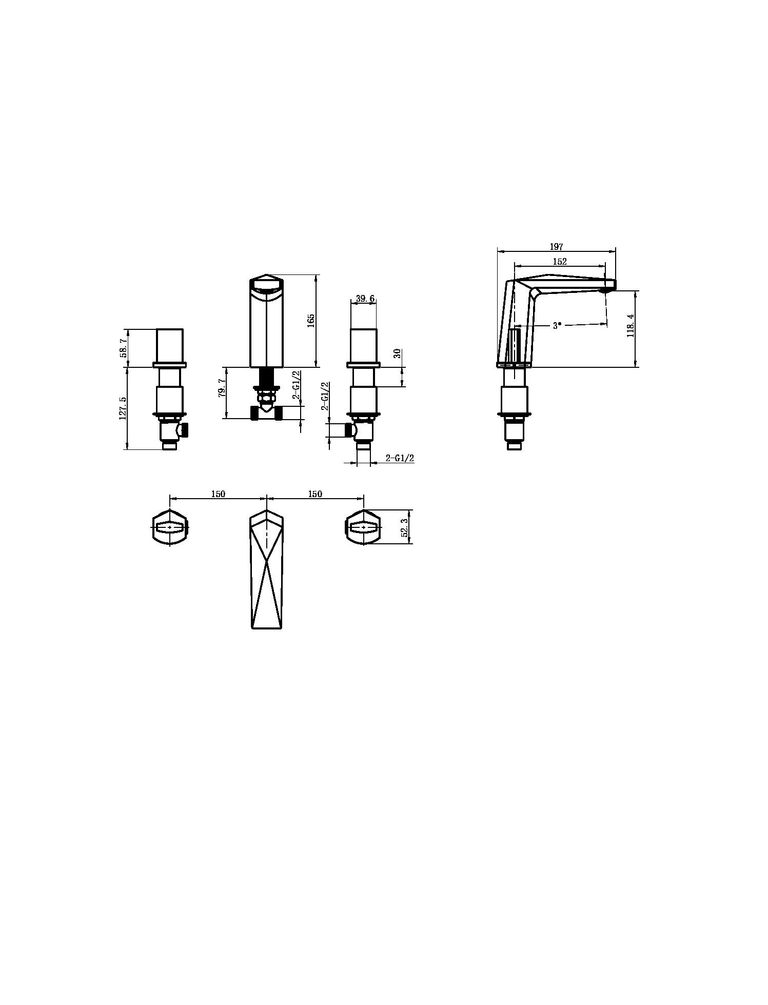 Смеситель врезной на 3отв. VENTURO черный, ручка ICE