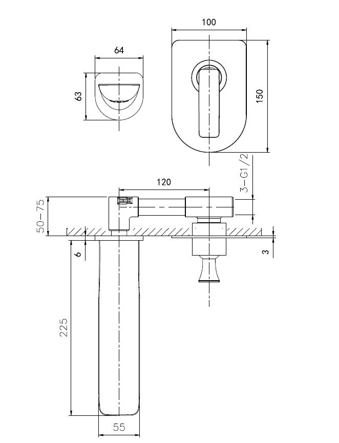 Смеситель для раковины встраиваемый WONZON & WOGHAND SHARK, Хром (WW-481701-CR)