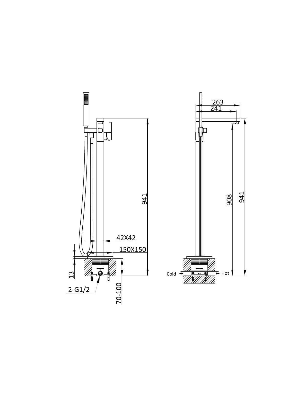 Смеситель для ванны напольный VTF-101CH однорычажный, хром, , шт