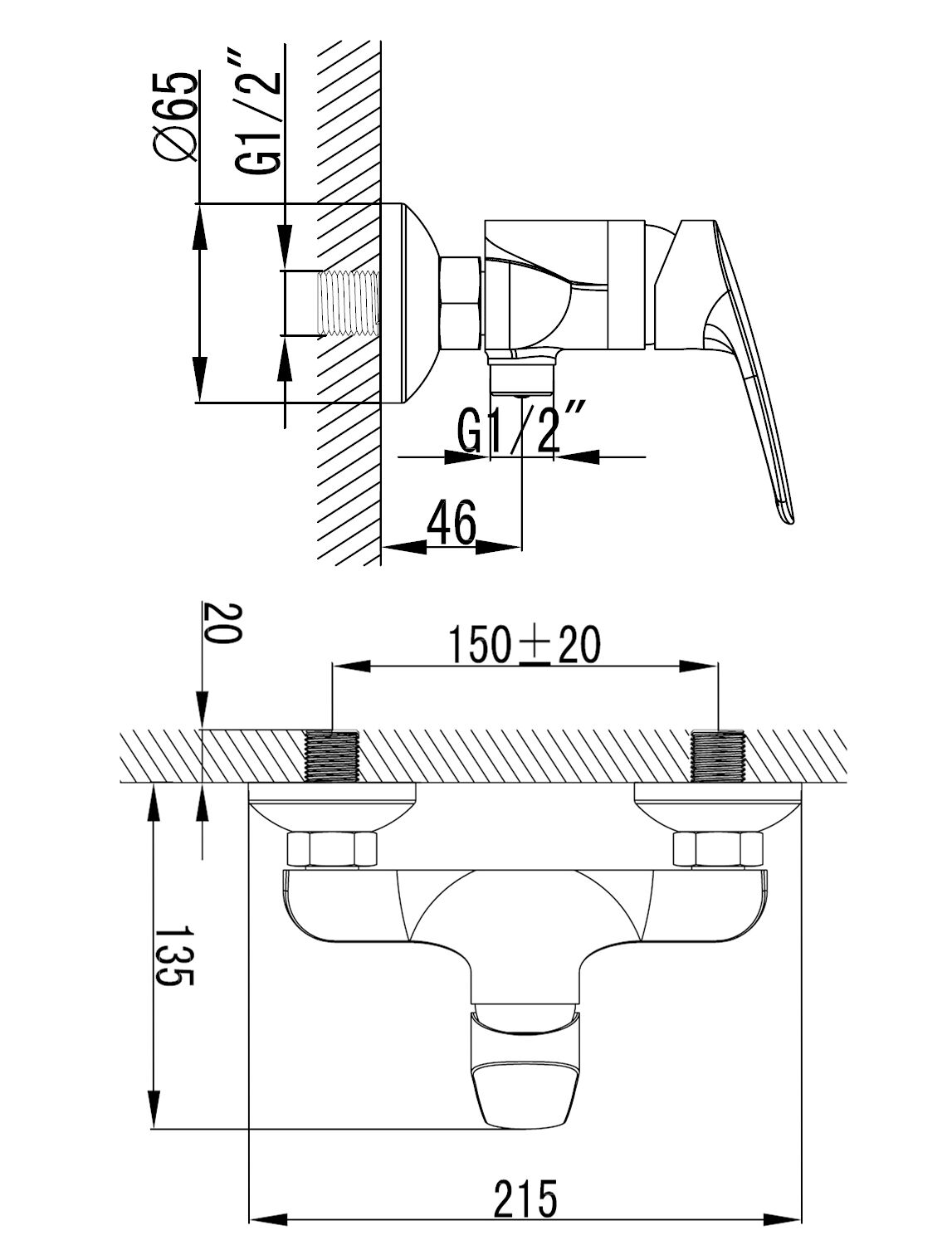Смеситель для душа AZARIO TAVIRA керамический картридж, хром