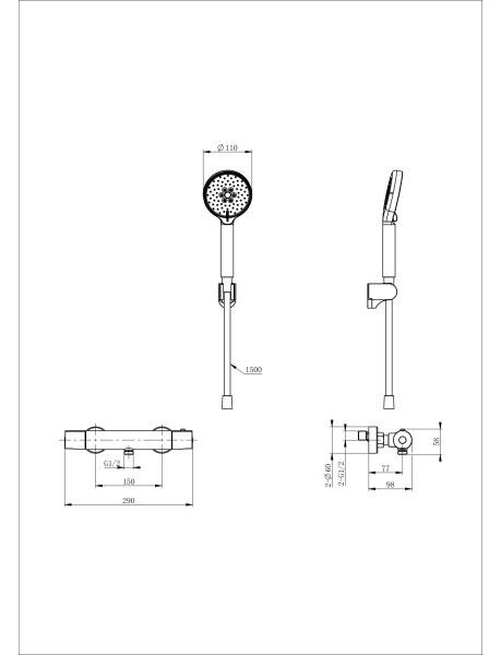 Смеситель для душа с термостатом WONZON & WOGHAND INN 6, Черный матовый (WW-B2029-A-MB)