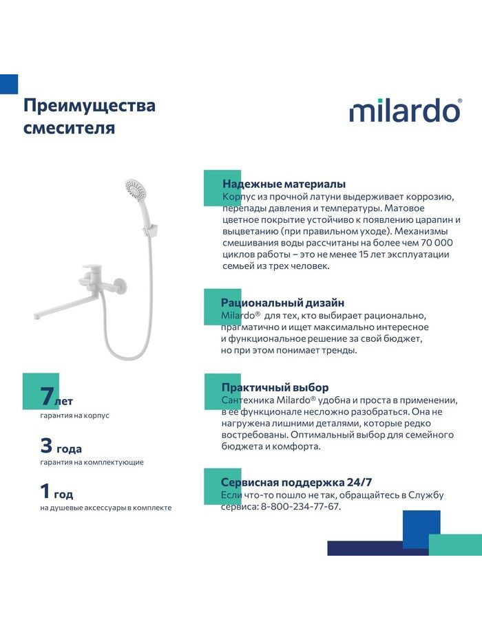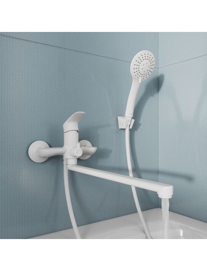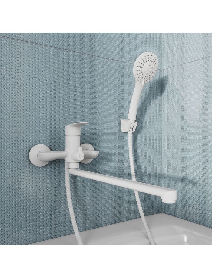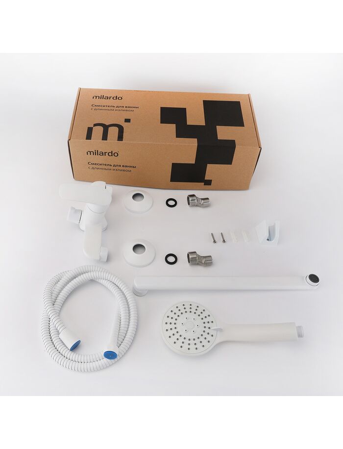 Смеситель для ванны с длинными изливом, белый матовый, Rora, Milardo, RORWT00M10