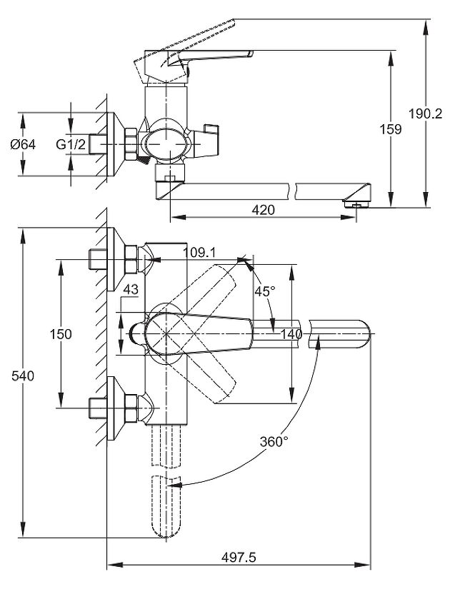 Длина излива мм: