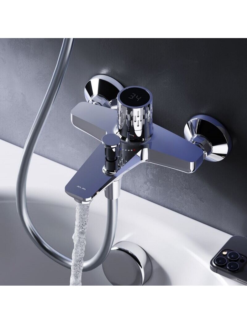 F90A10400 Gem Смеситель для ванны/душа с индикацией температуры, хром, шт.
