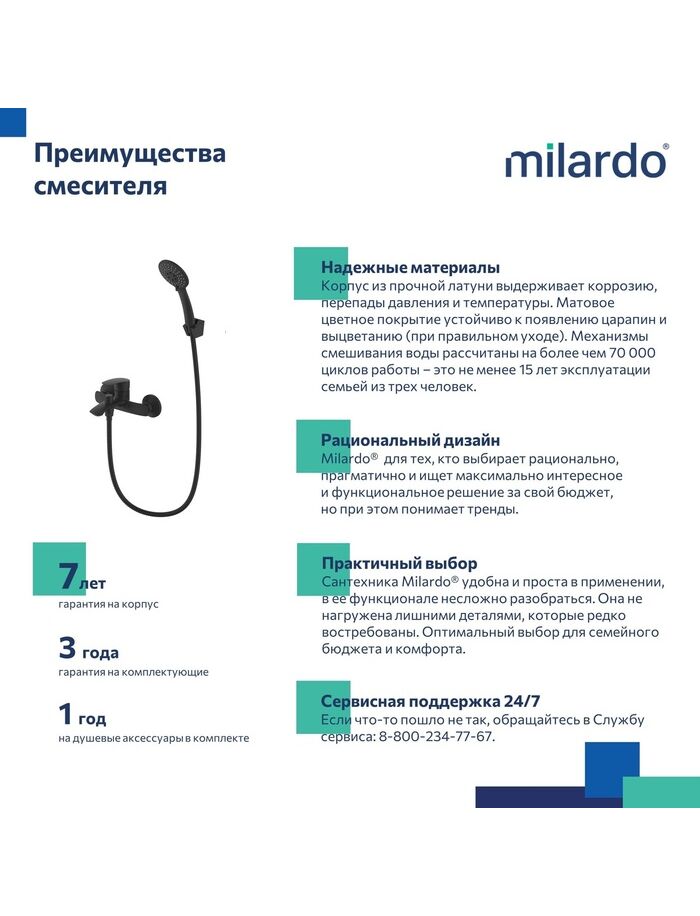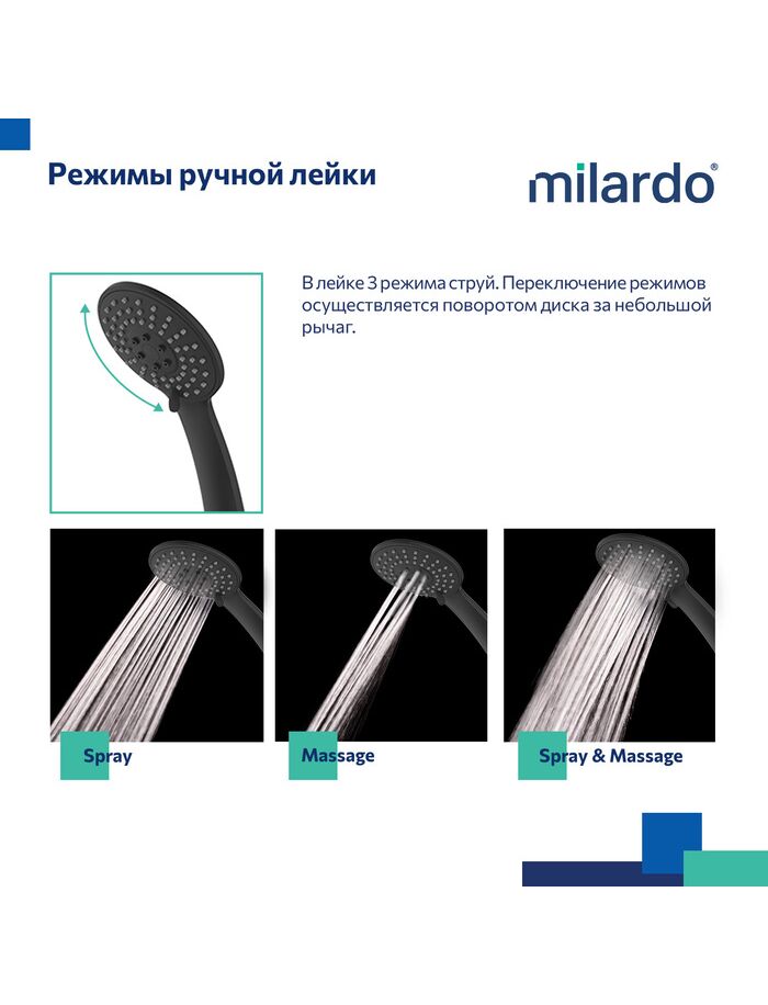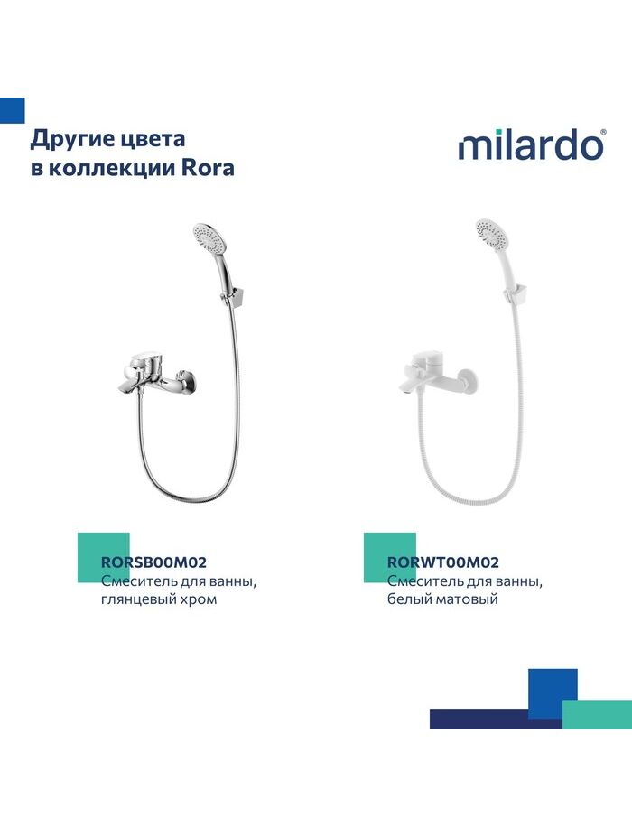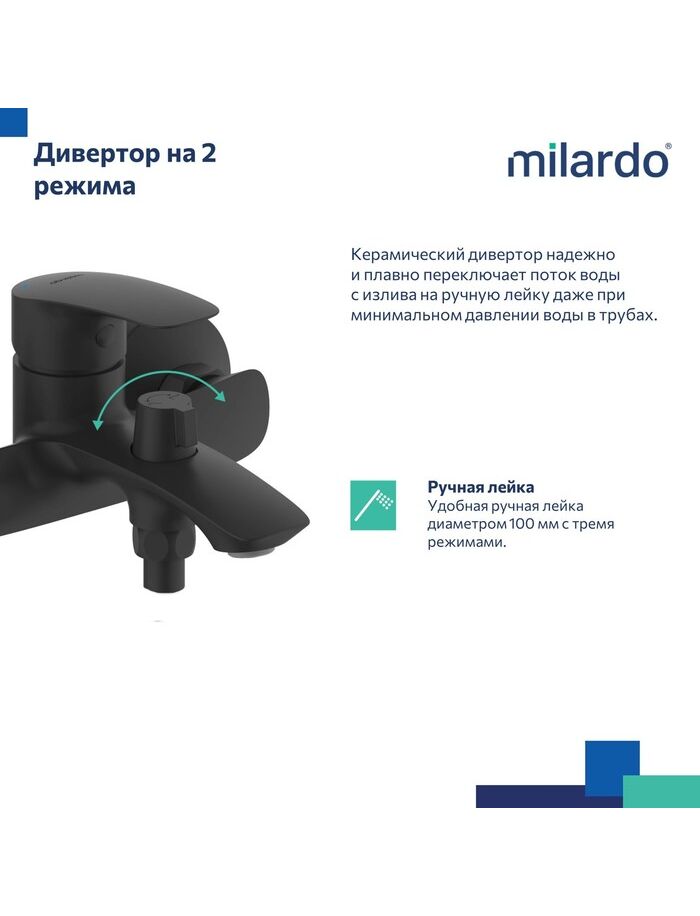 Смеситель для ванны, черный матовый, Rora, Milardo, RORBL00M02