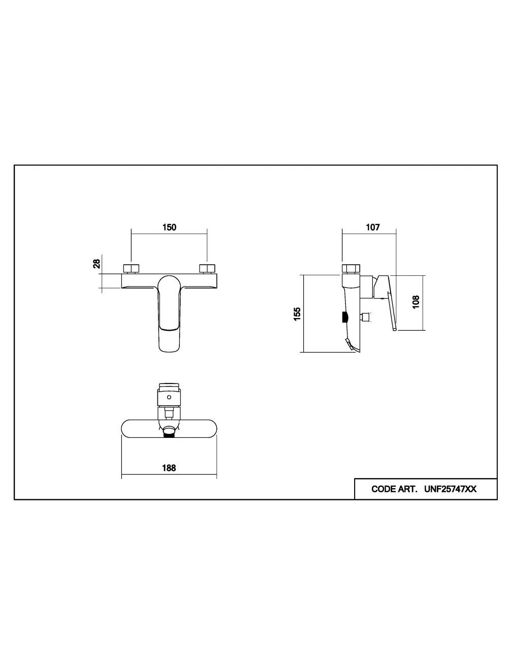 Смеситель для ванны и душа Abelsberg UNF25747MB Lineara, вулканический черный