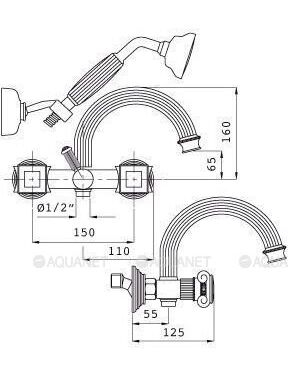 Смеситель для ванны и душа Cezares APHRODITE-V-03/24-Sw, золото