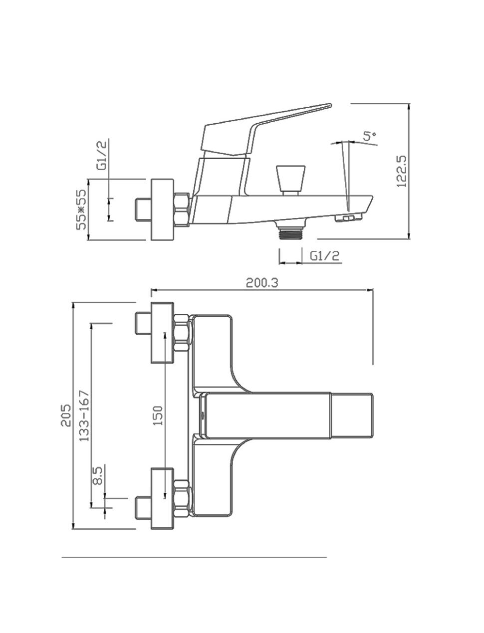 Смеситель для ванны Paini Torre без аксессуара, черный