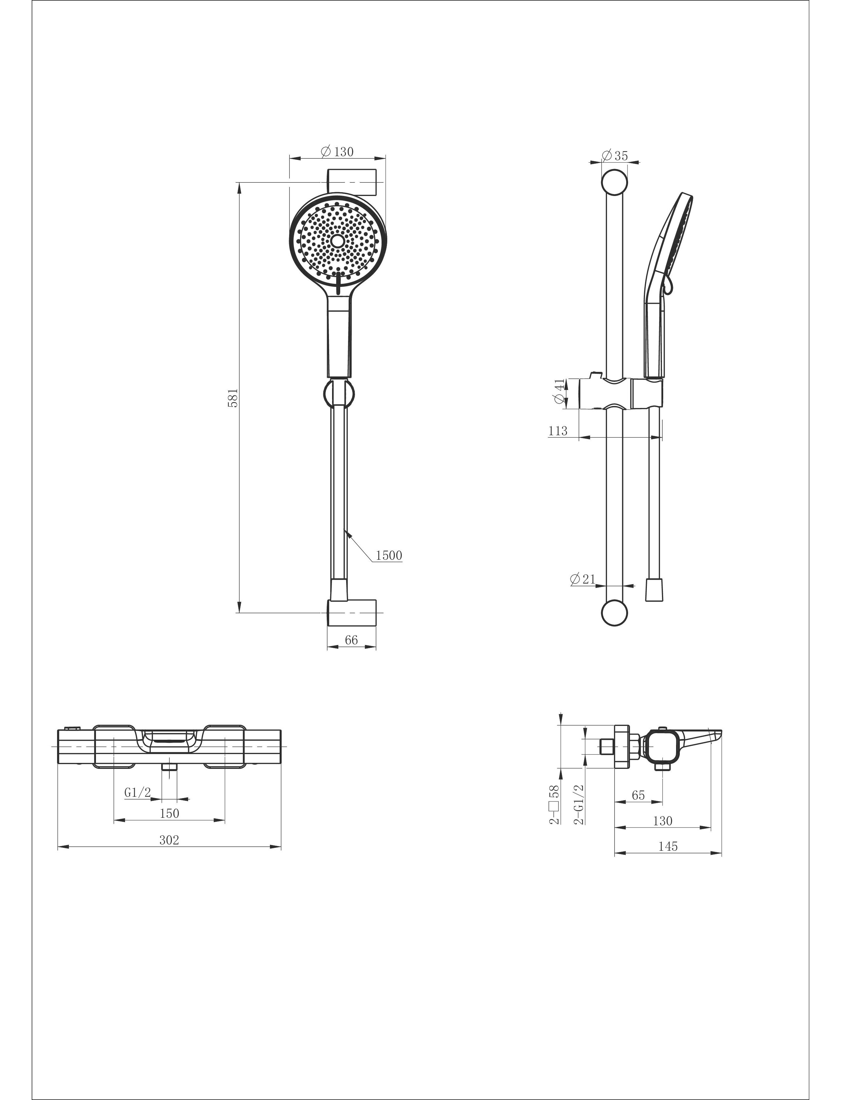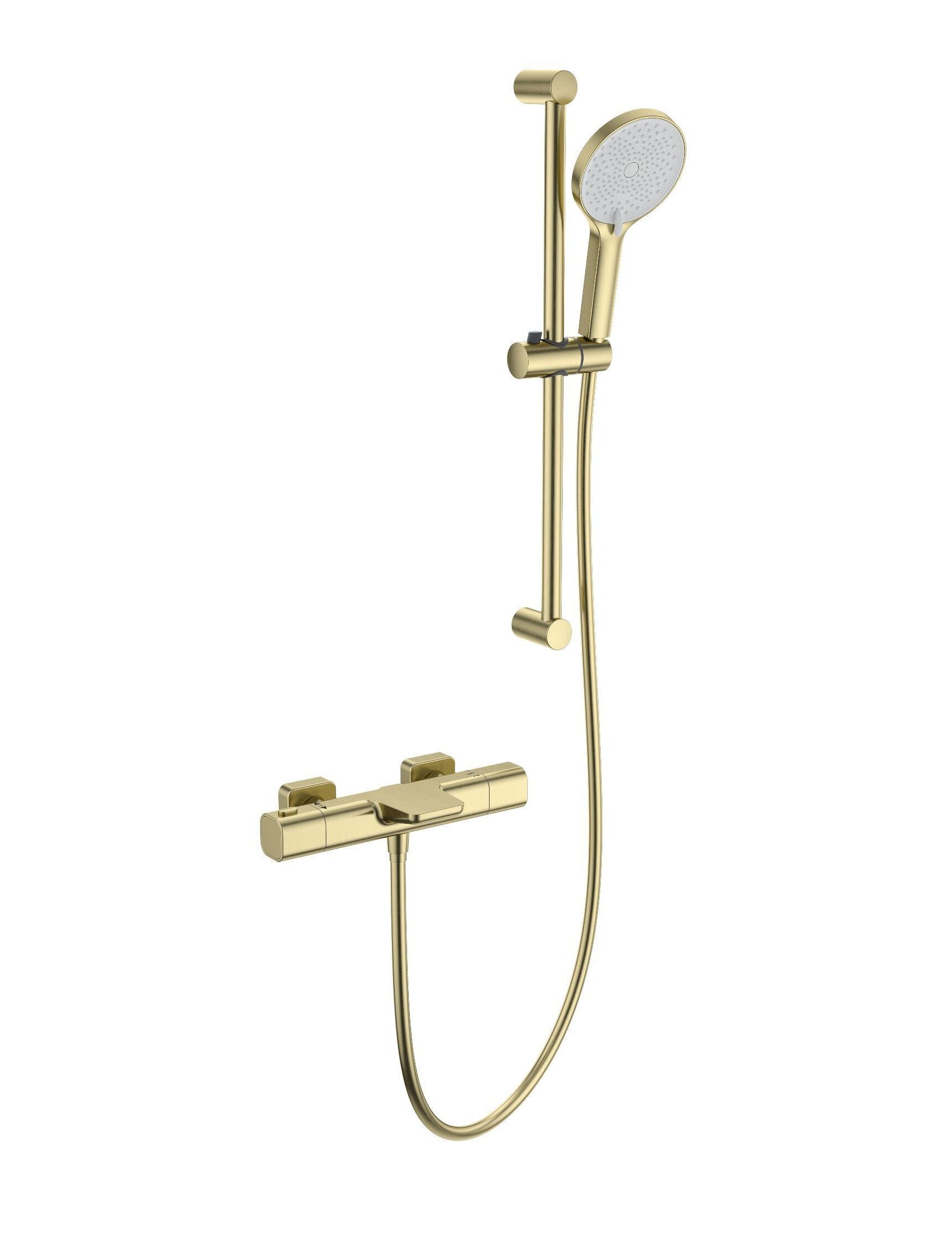 Смеситель для ванны с душевым гарнитуром и термостатом WONZON & WOGHAND Plate, Брашированное золото (WW-C2017-A-BG)