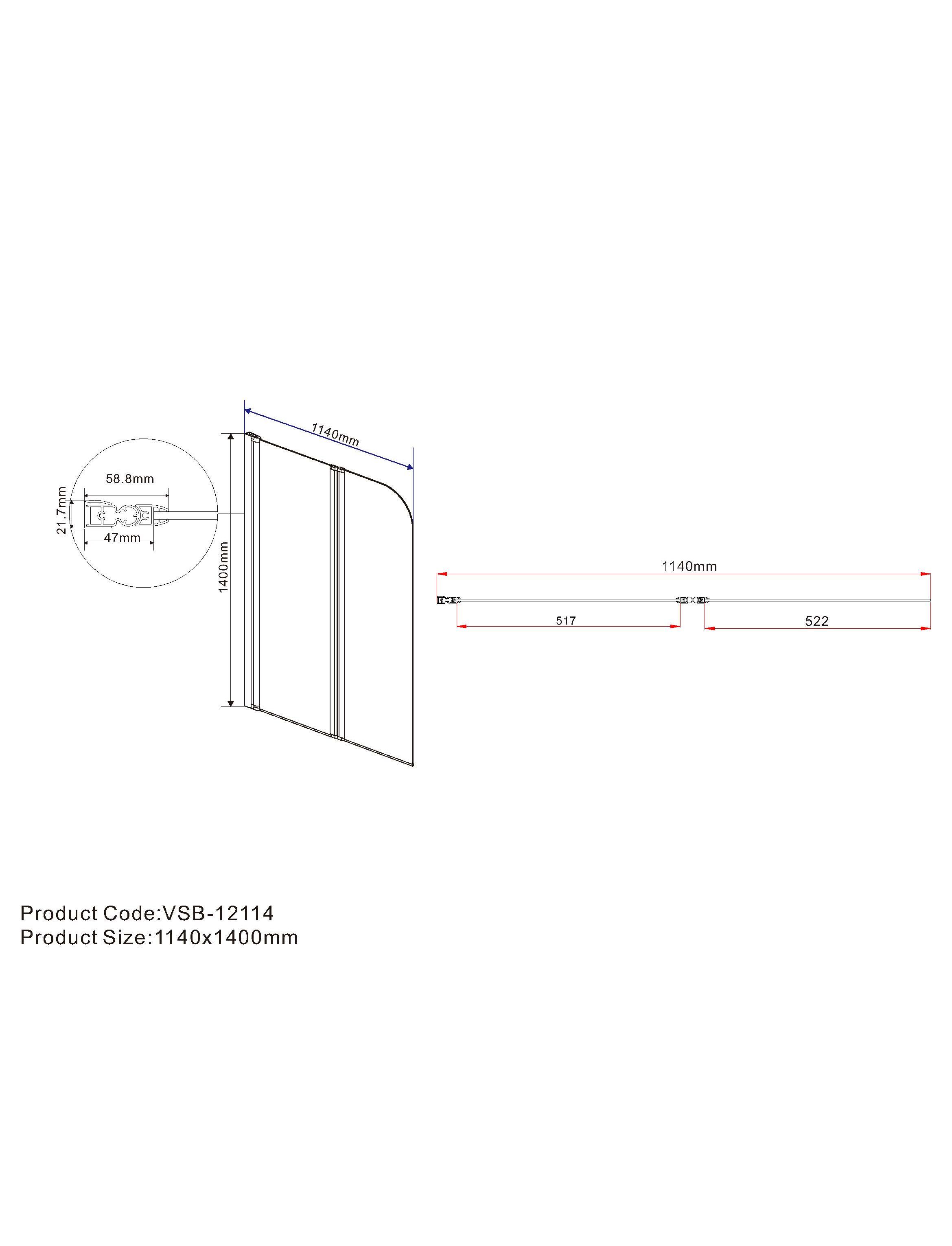 Душевая шторка на ванну VSB-12114CL, 1140*1400, хром, стекло прозрачное, , шт