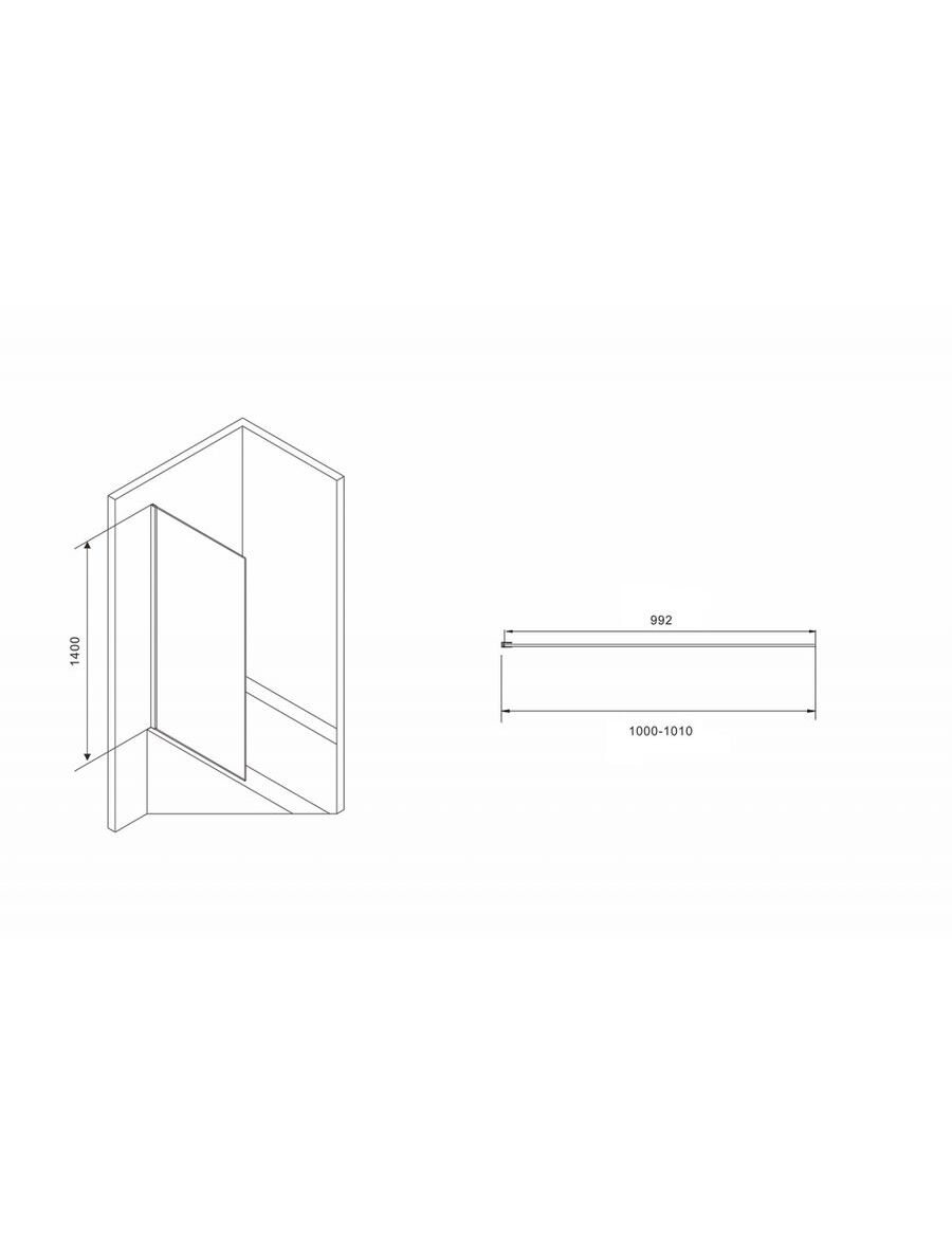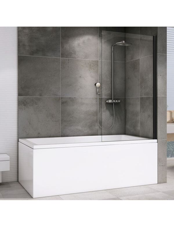 Фиксированная шторка на ванну Стекло: закаленое прозрачное 6 мм Профиль: черный Особенности: • универсальный монтаж