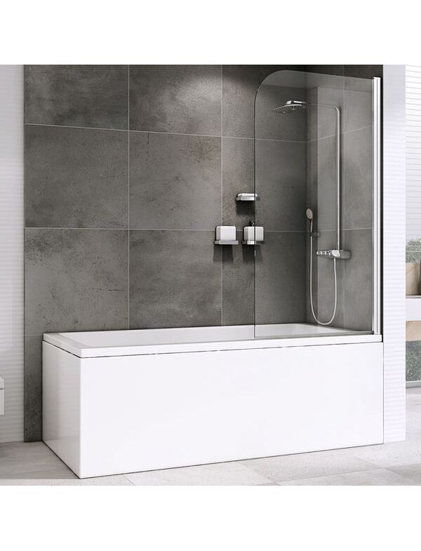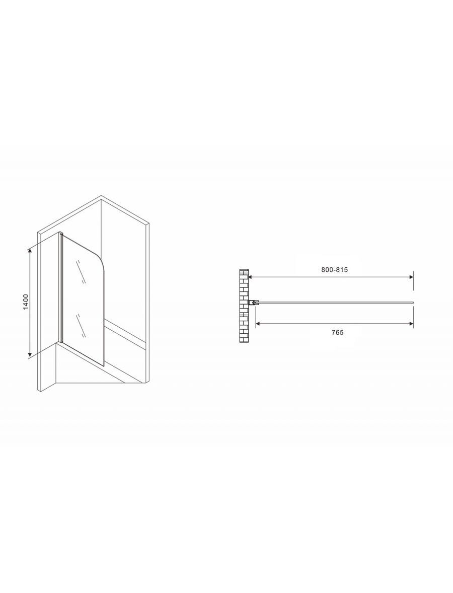 Распашная шторка на ванну Стекло: закаленое прозрачное 6 мм Профиль: хром Особенности: • универсальный монтаж