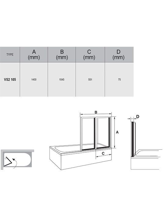 Шторка для прямоугольных ванн складывающаяся, 2-х элементная; размер: 105