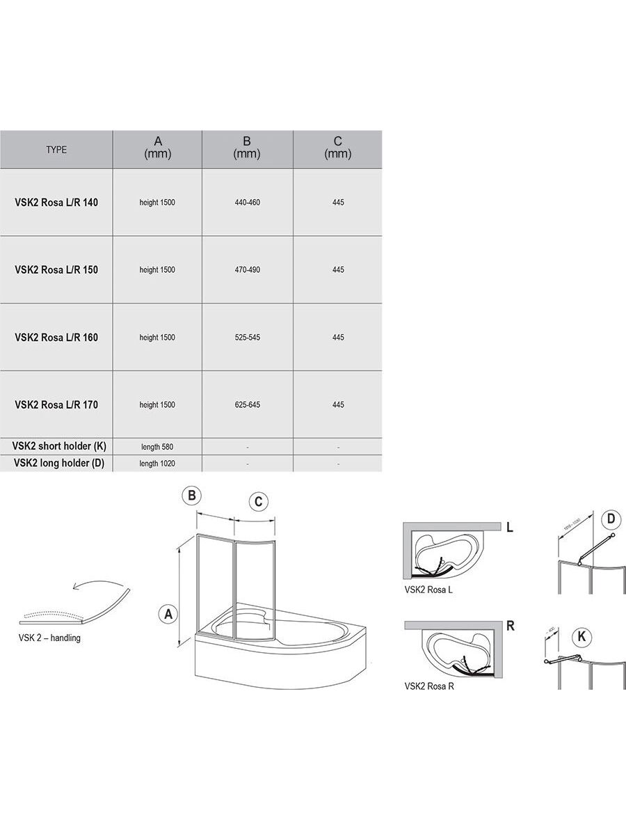 Шторка для ванны Ravak Chrome CVSK1 Rosa 140/150 L блестящая+транспарент