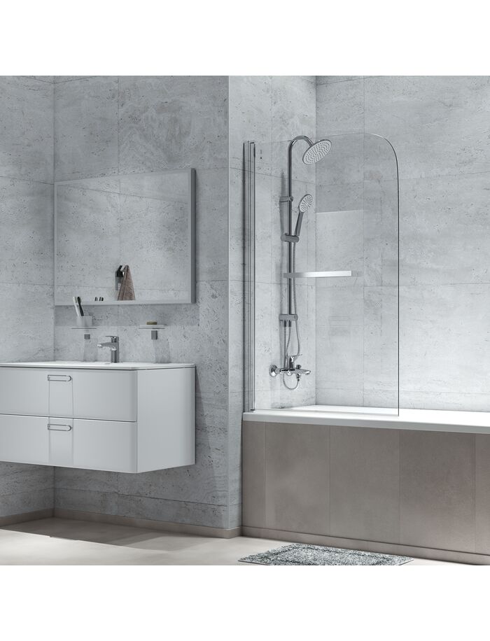 Стеклянная шторка Ray классического дизайна с высокой степенью проработки каждой детали отлично подойдет под любую стандартную прямоугольную ванну. Шторка распахивается плавно и бесшумно – при открывании специальный механизм приподнимает ее на 3 мм. Шторка имеет универсальную ориентацию и удобный регулируемый размер 890-900х1400 мм, позволяющий сгладить неровность стен до 15 мм. Стильный алюминиевый профиль обеспечивает стабильность и надежность всей конструкции.• Прозрачное закаленное стекло толщиной 6 мм выдерживает случайные удары, что делает шторку надежной и безопасной в каждодневном использовании.