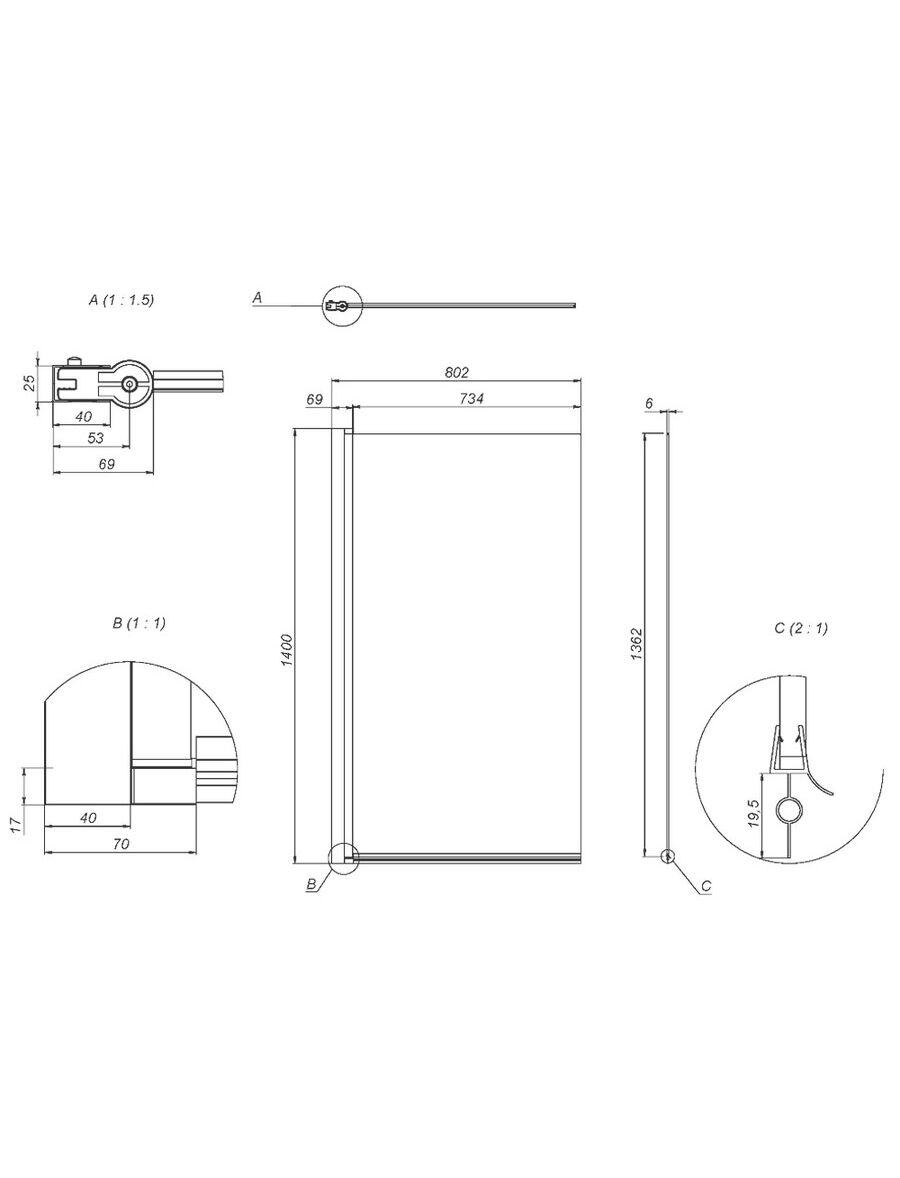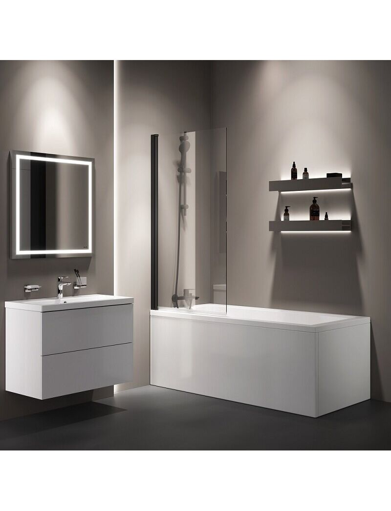 W90BS-D080-140BT Gem Шторка на борт ванны 80х140, поворотная, профиль черный мат, стекло прозрачное