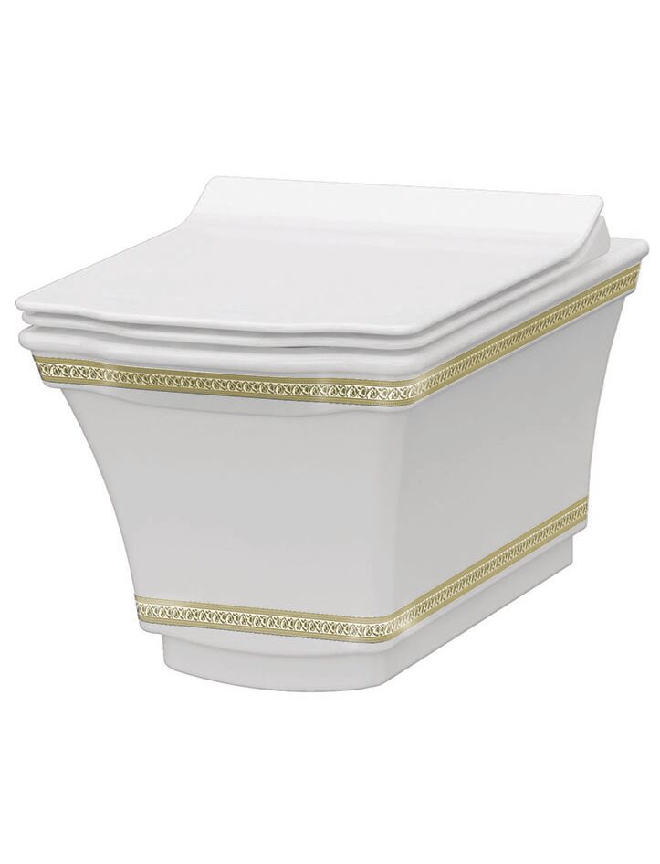 BOHEME Подвесной Унитаз с узором Hermitage GOLD с технологией RIMLESS - безободковый смыв, имеет скрытый монтаж и экономичный смыв 4л. 951-G