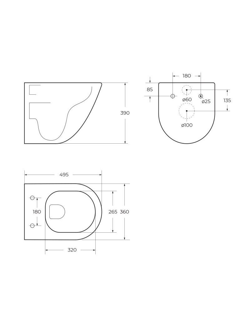 Чаша унитаза подвесного безободкового, закрытый низ, смыв TORNADO