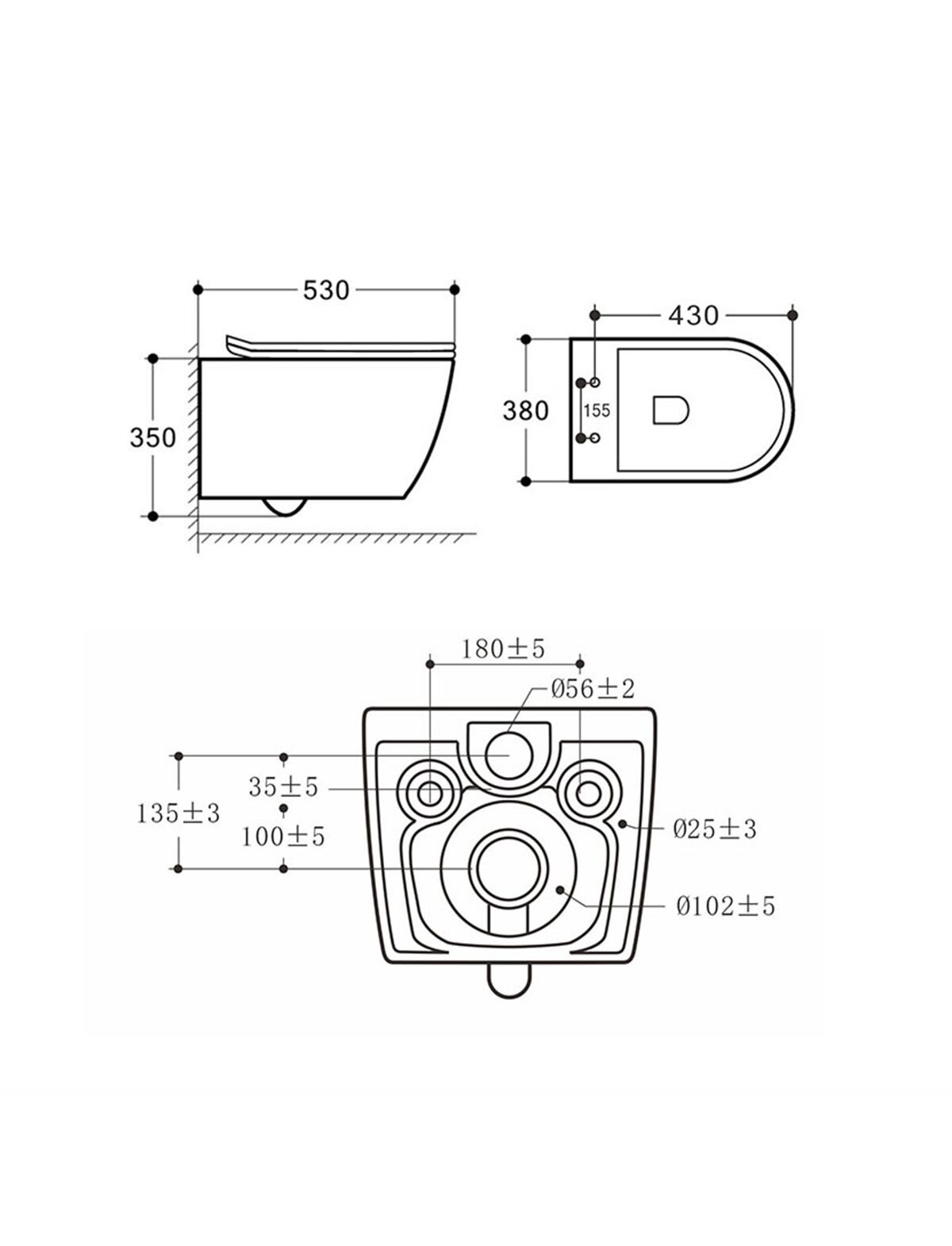 Унитаз подвесной Felice VT1-25 безободковый, цвет белый, ультратонкое soft-close сиденье, , шт