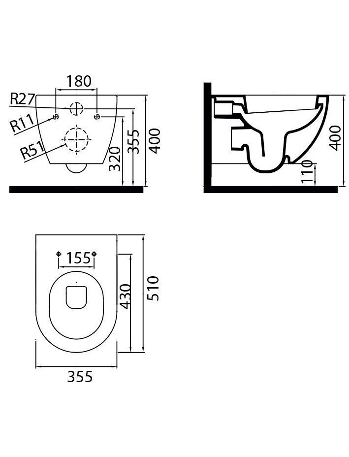 Унитаз Ravak Uni Chrome X01516 подвесной без сиденья