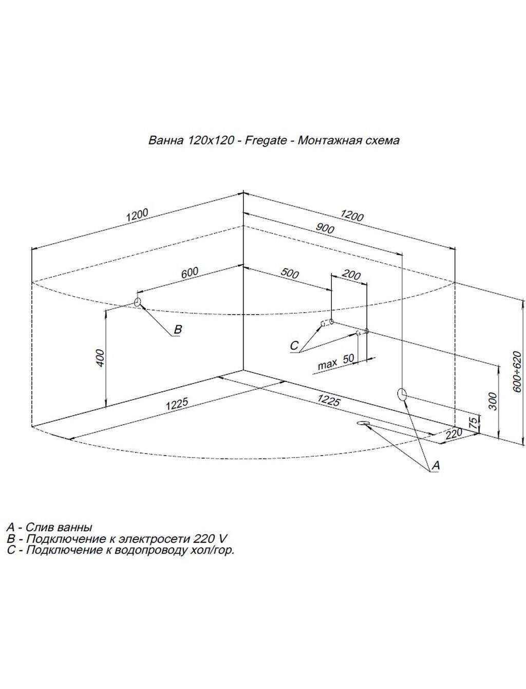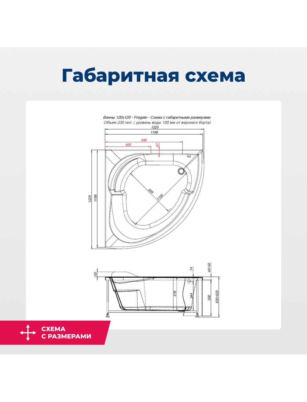 Акриловая ванна Aquanet Fregate 120x120 (с каркасом)