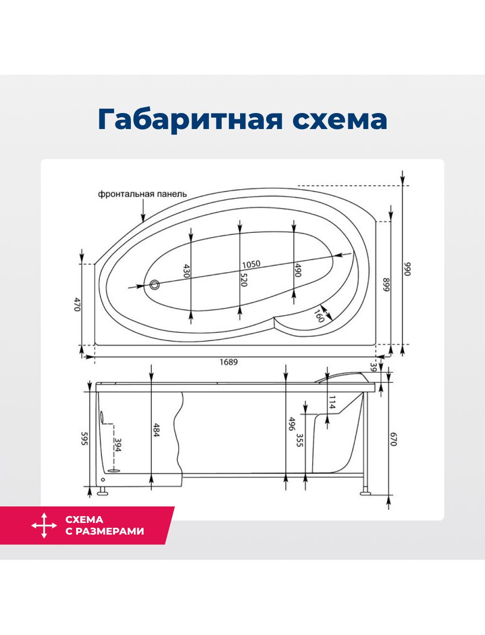 Акриловая ванна Aquanet Jersey 170x90 L (с каркасом)