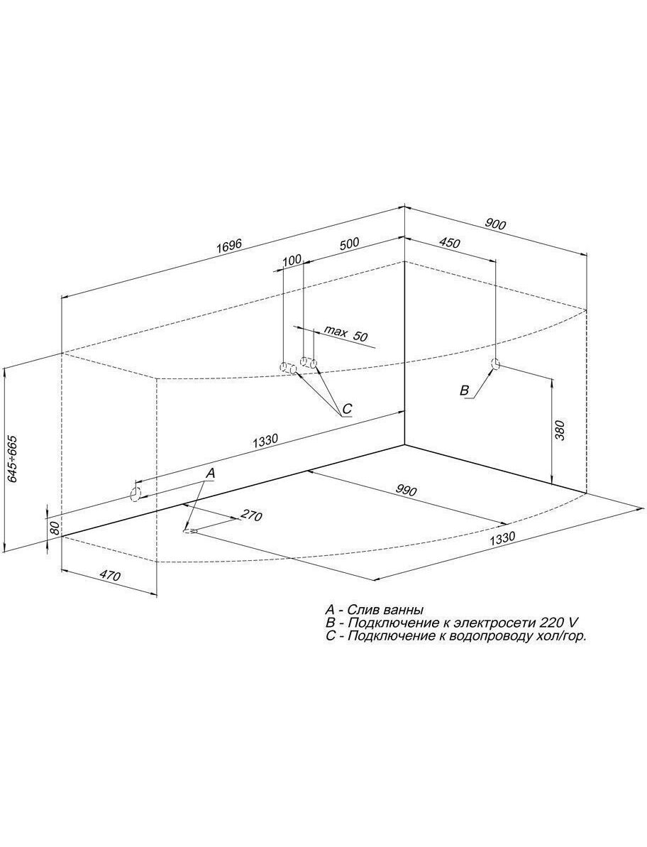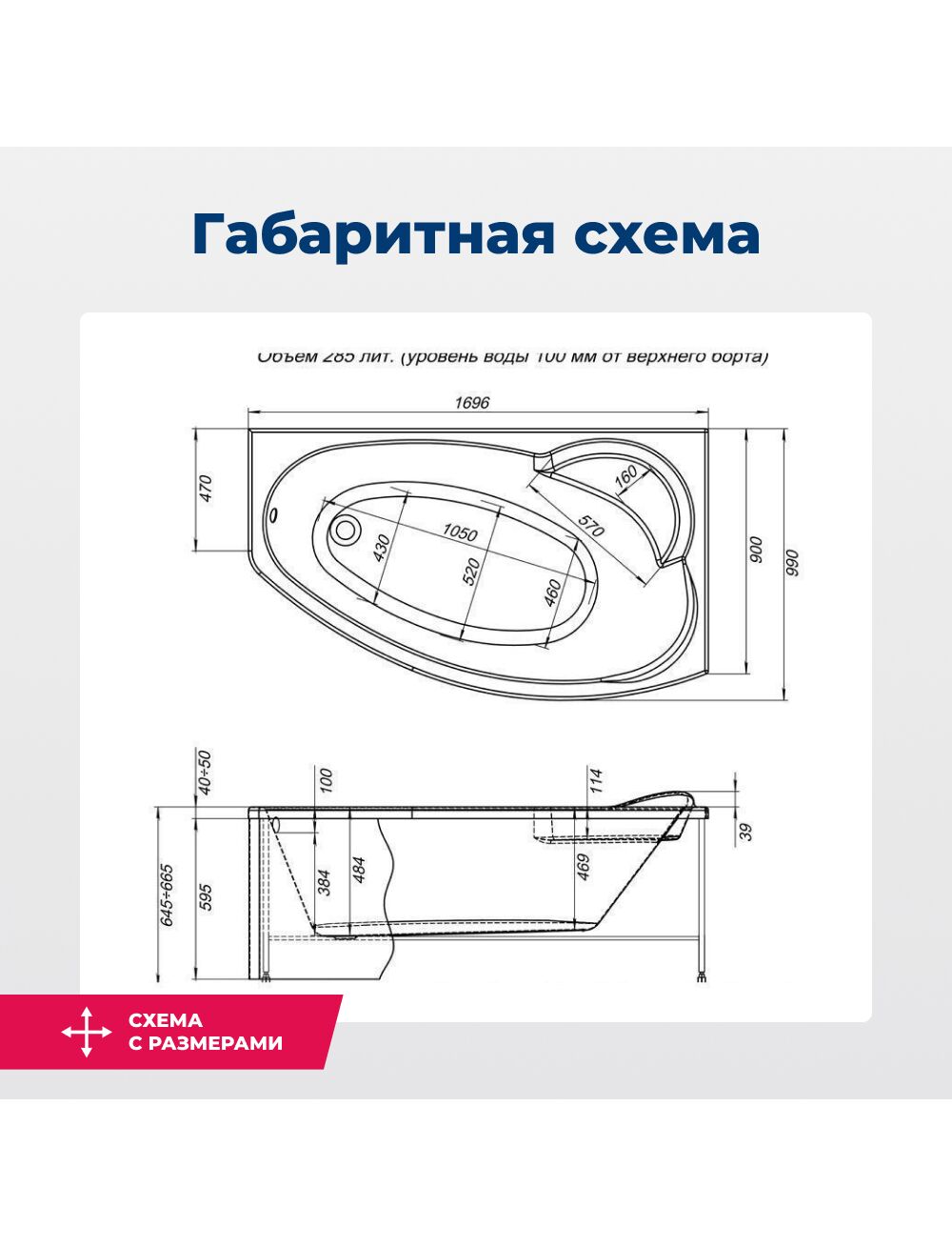 Акриловая ванна Aquanet Jersey 170x90 R (с каркасом)