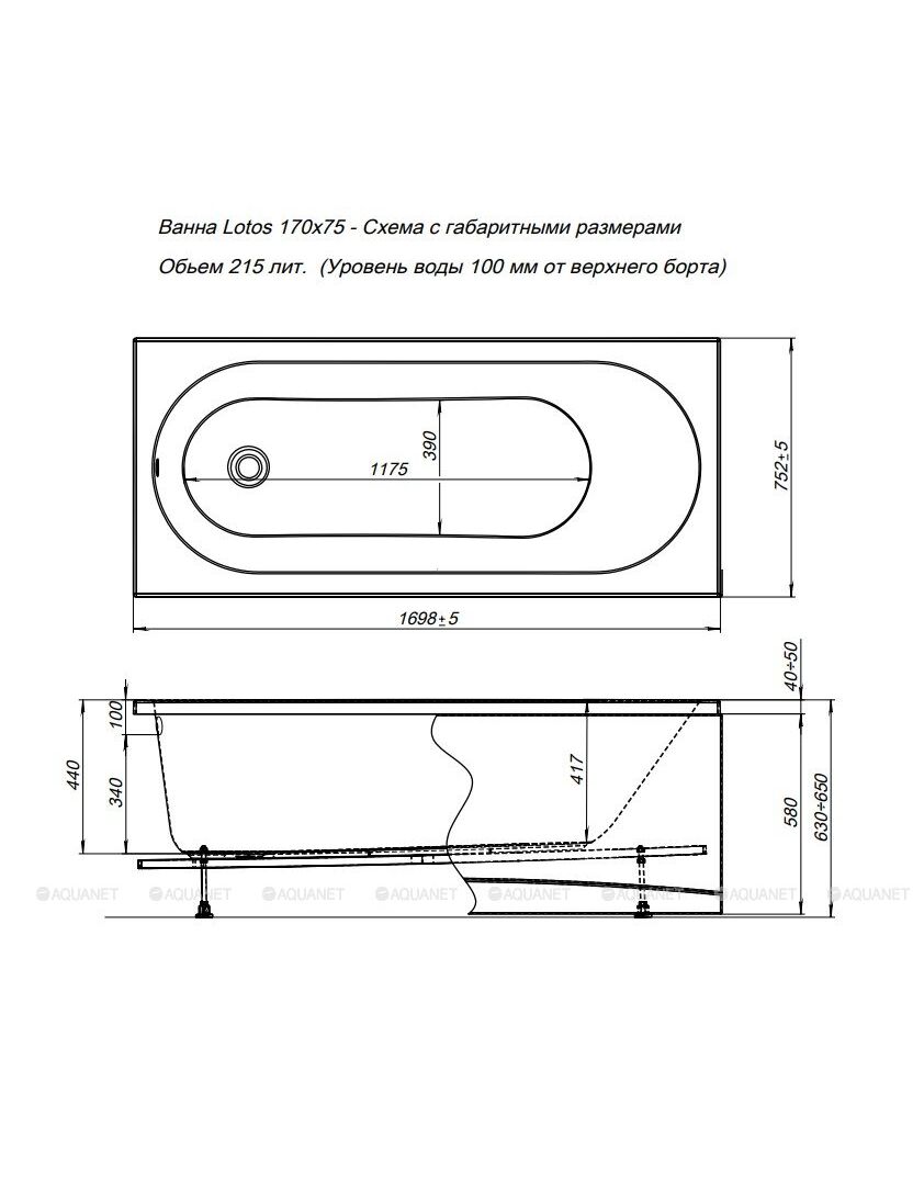 Акриловая ванна Aquanet Lotos 170x75 (с каркасом)