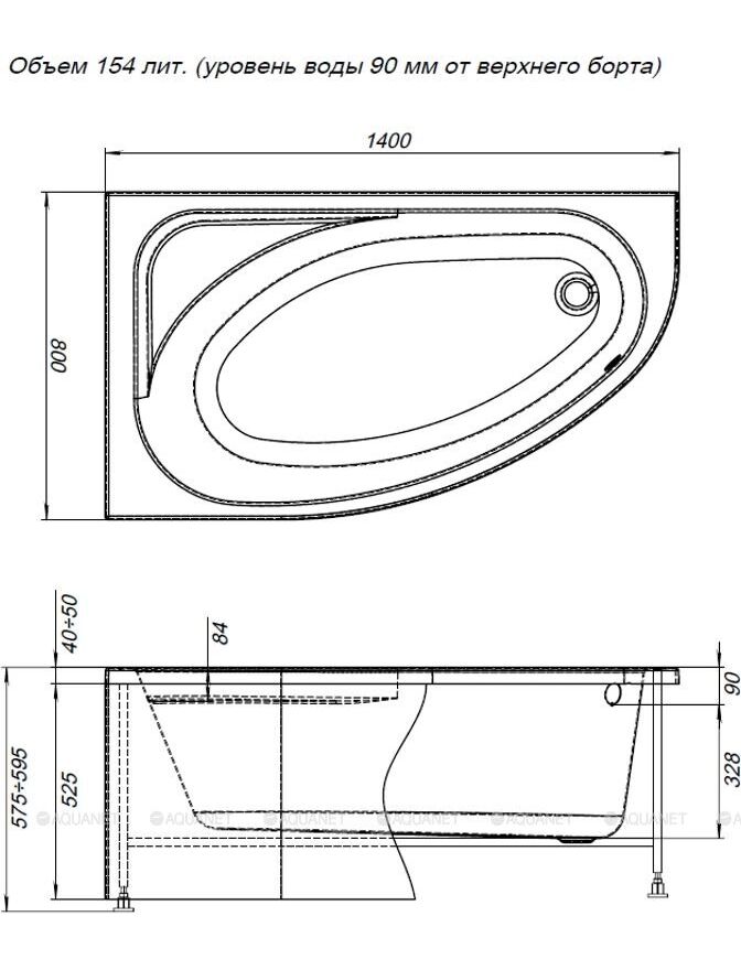 Акриловая ванна Aquanet Mia 140x80 L (с каркасом)