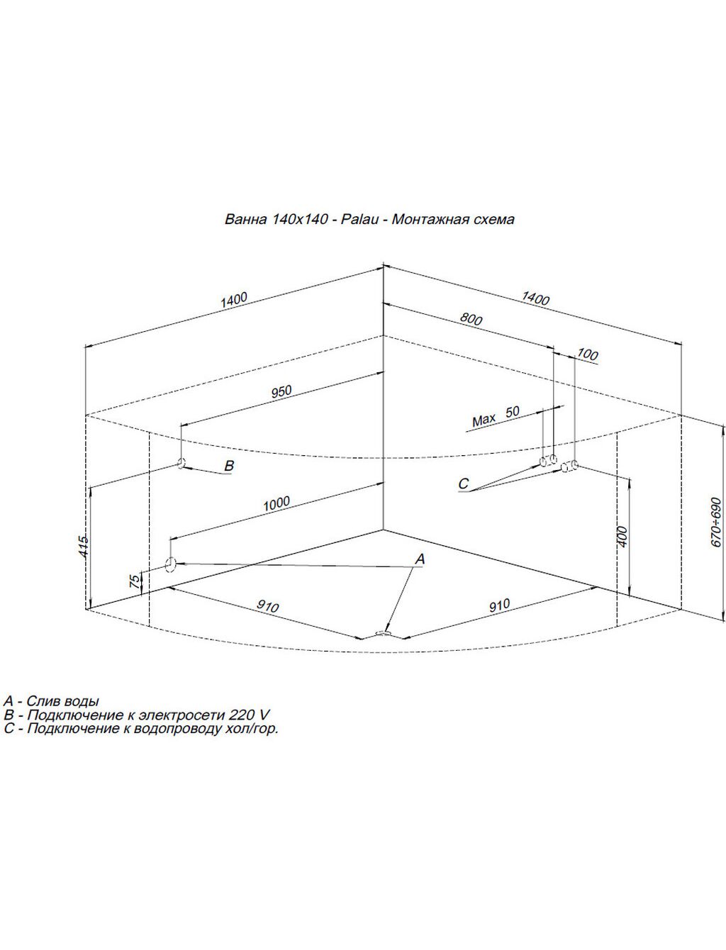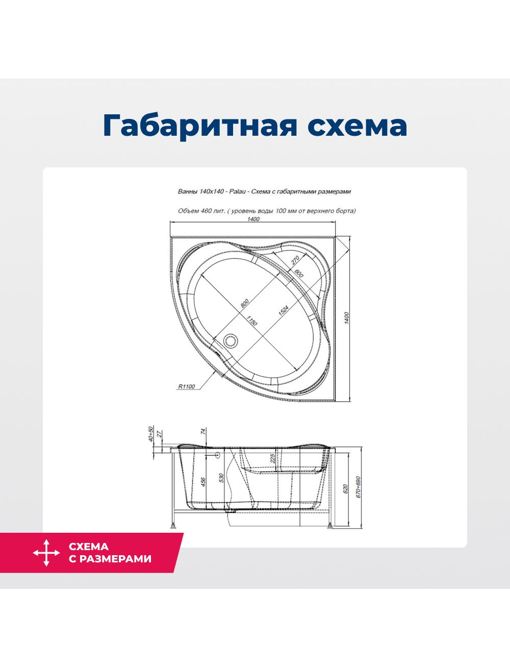 Акриловая ванна Aquanet Palau 140x140 (с каркасом)