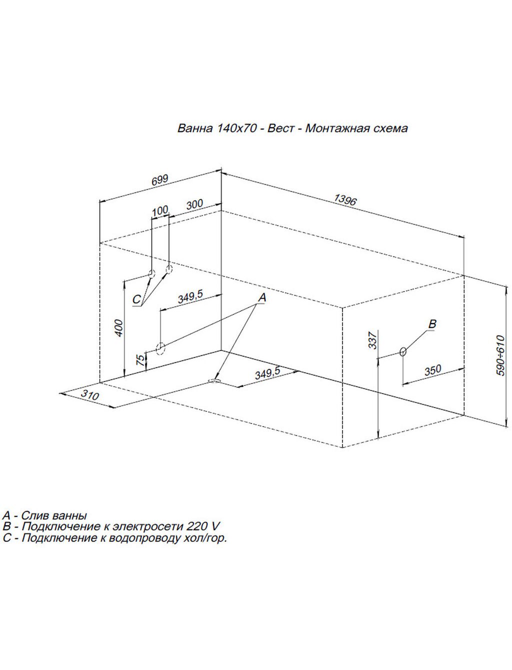 Акриловая ванна Aquanet West 140x70 (с каркасом)