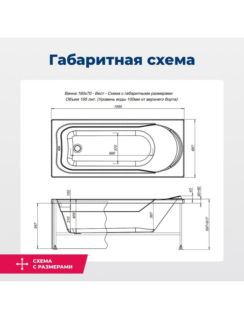 Акриловая ванна Aquanet West 160x70 (с каркасом)