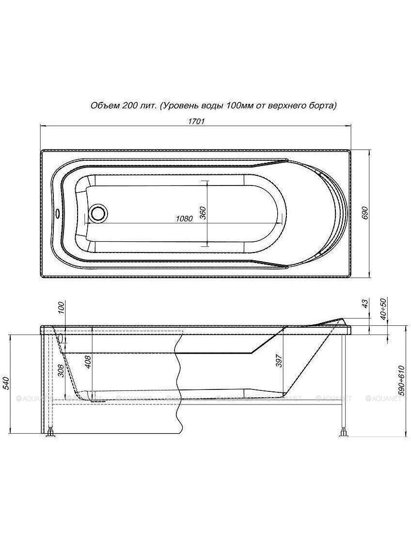 Акриловая ванна Aquanet West NEW 170x70 (с каркасом)