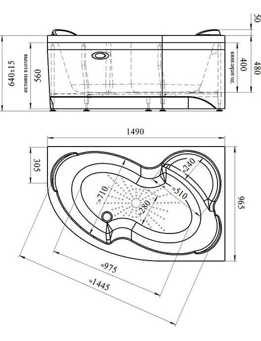 Акриловая ванна Ирма 149х96 (правосторонняя), фронтальная панель, полотенцедержатель, каркас