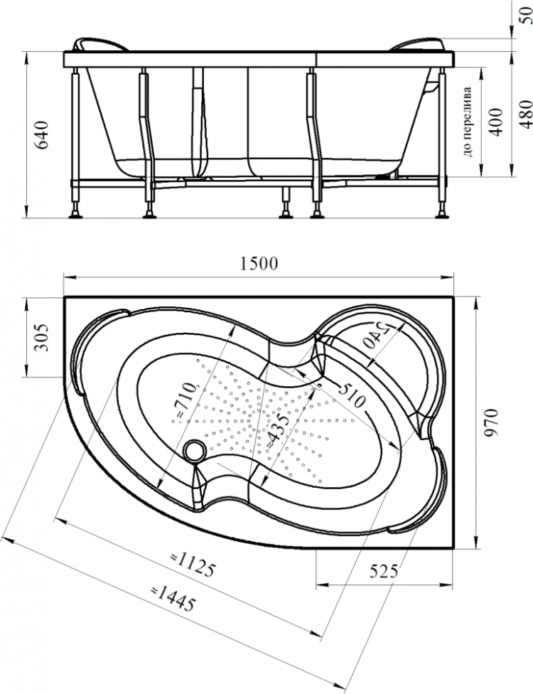 Акриловая ванна Ирма 149х96 (правосторонняя), каркас