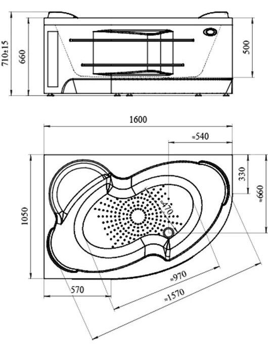 Акриловая ванна Ирма 160х105 (левосторонняя), фронтальная панель, полотенцедержатель, каркас