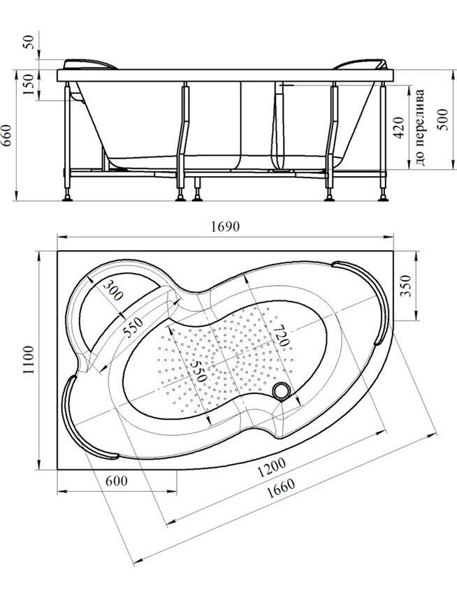 Акриловая ванна Ирма 169х110 (левосторонняя), фронтальная панель, полотенцедержатель, каркас